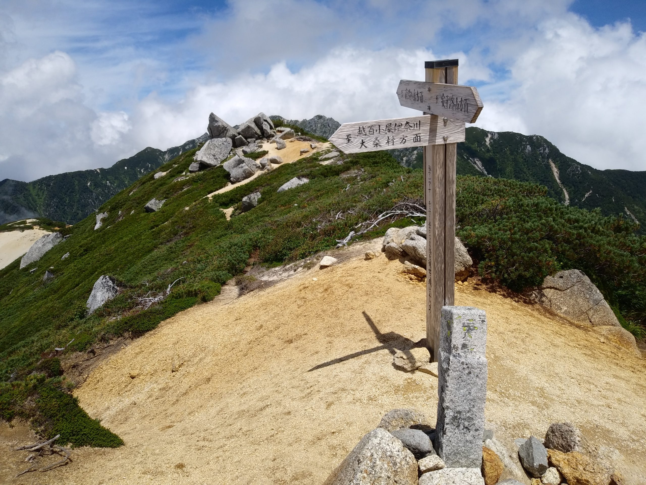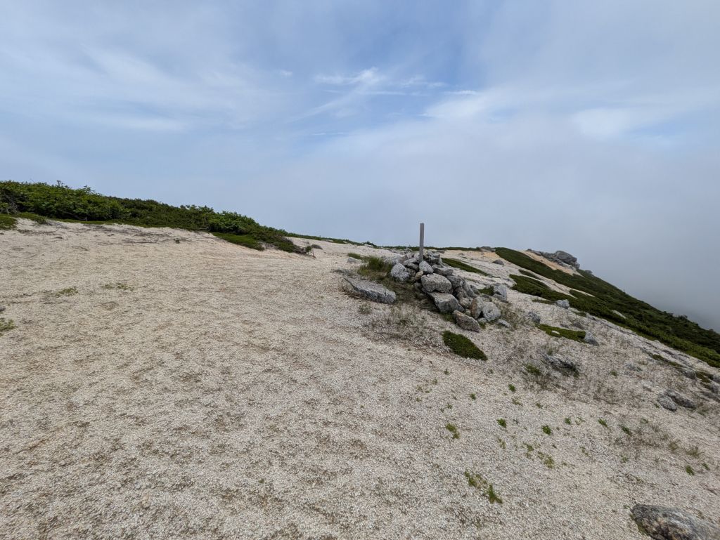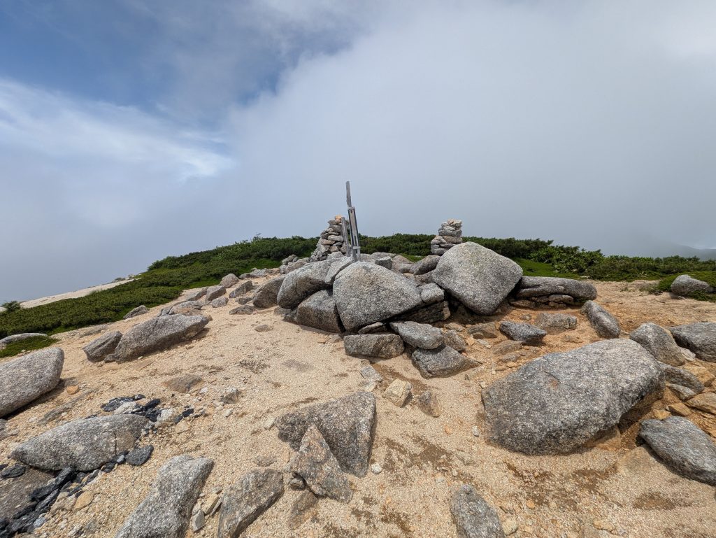 南越百山は越百山の南隣にあります。その頂上には空に向かって立つ大きなケルンがあります。正にCosmo(宇宙)と繋がれそうな特別な世界が広がっています。