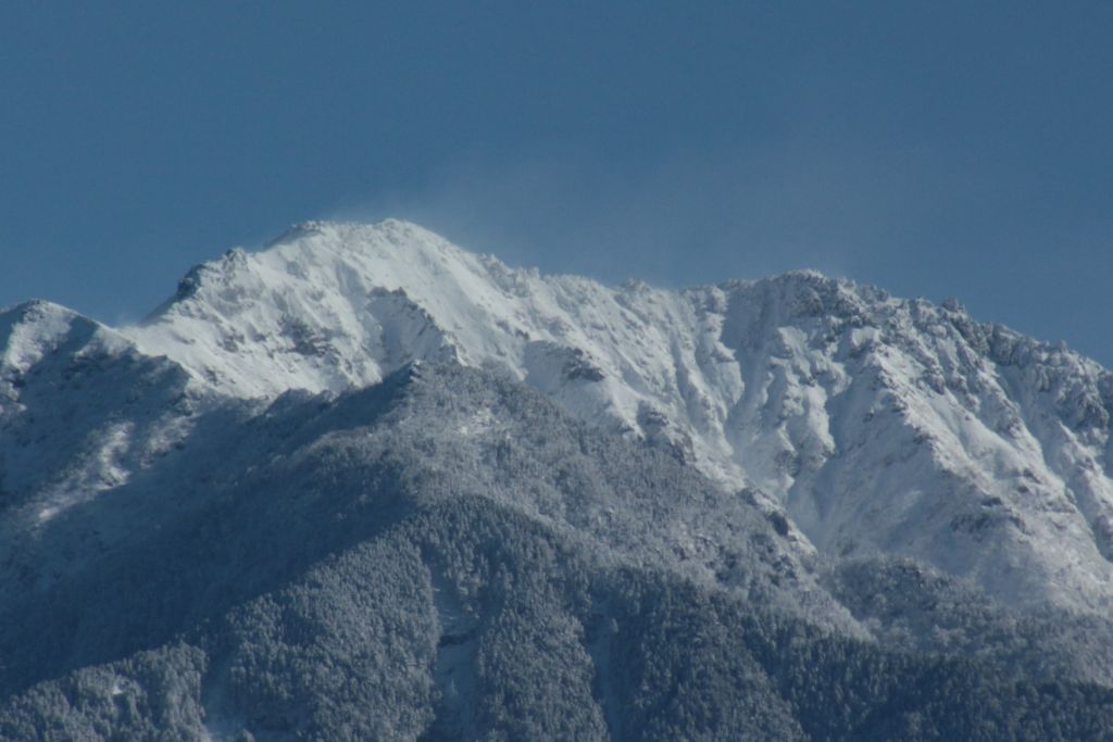 2026年1月6日、晴天に恵まれましたが、南駒ケ岳山頂は強風が吹き山の雪が飛ばされていました。