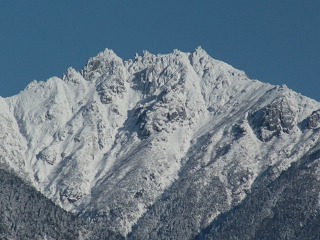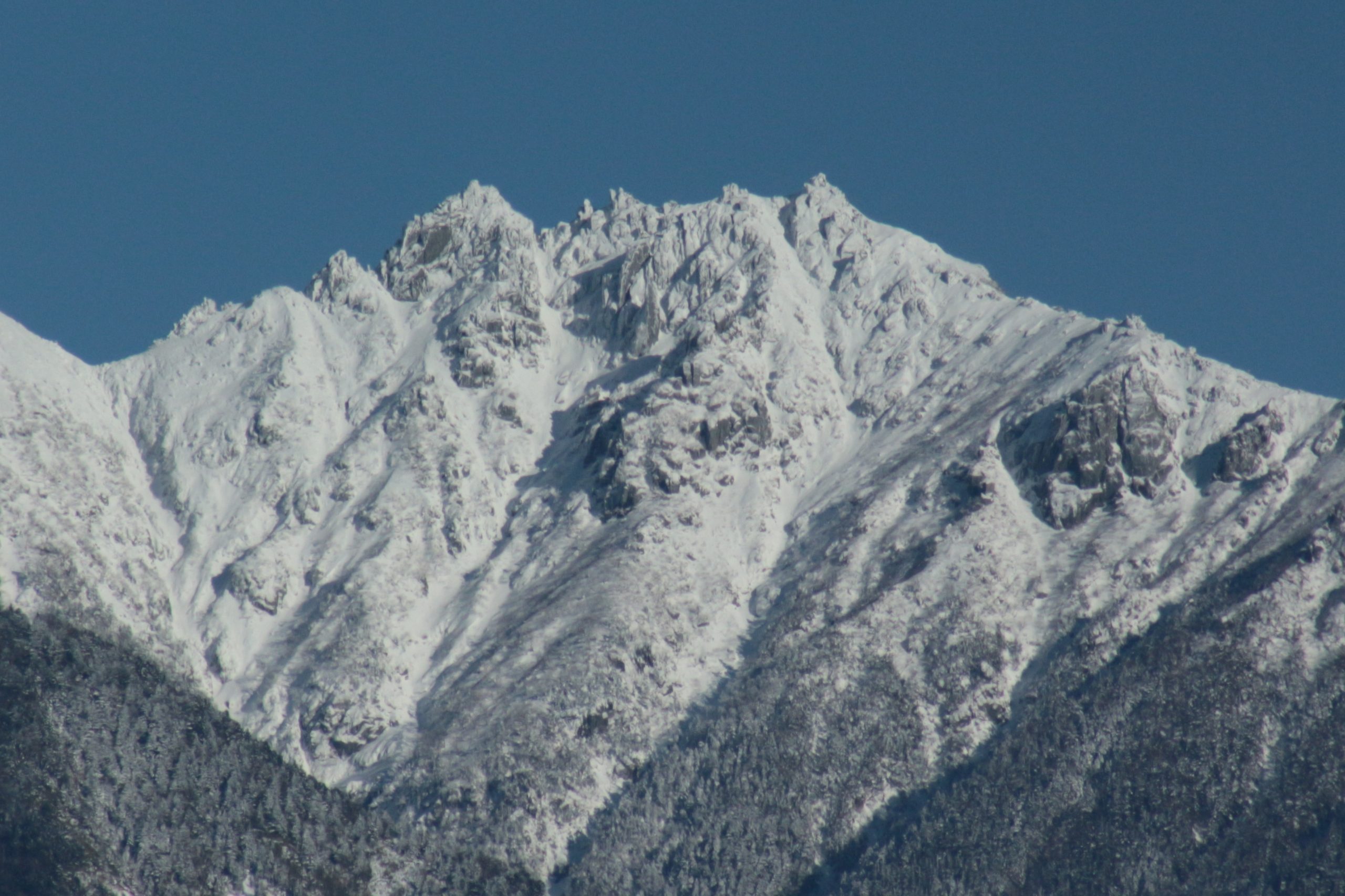 仙涯嶺と越百山は、今日も輝いていました。しかし、この二つの頂、鬼と福みたいな対比。