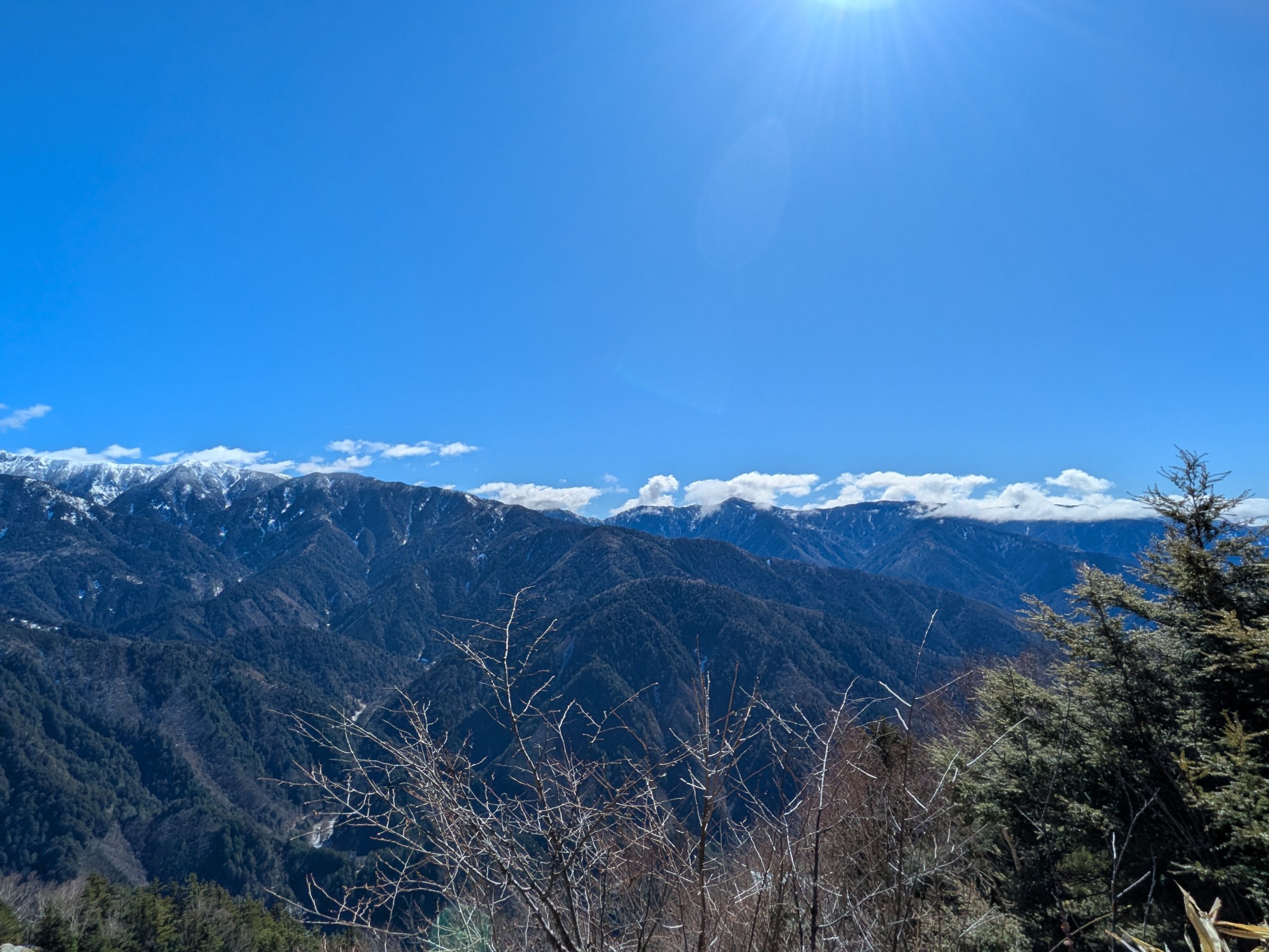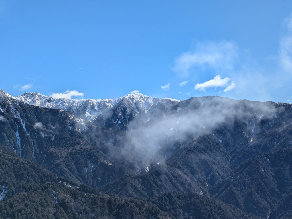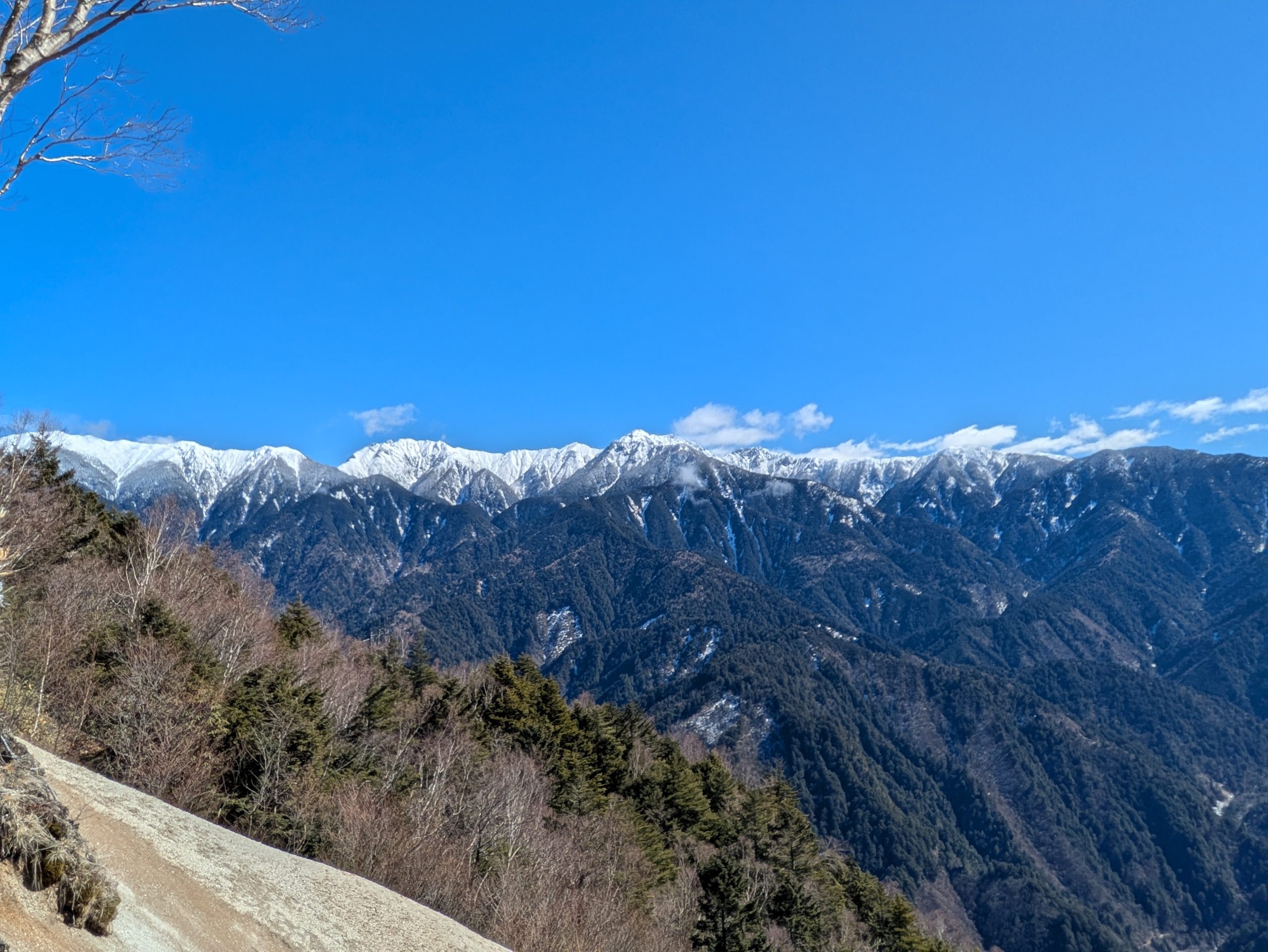 2月26日の中央アルプス 2026.02.27 2月26日、糸瀬山1867mに登って、頂上手前の崩壊地上から中央アルプスを眺めました。 糸瀬山のこの地点からは熊沢岳、東川岳、空木岳、南駒ケ岳、仙涯嶺、越百山、南越百山が見えます。特に南越百山はその手前の福栃山に隠れて里からは見えません。以下の写真では越百山の右手に白くなだらかな南越百山が見えています。 南越百山の右手には奥常念の山々が広がっています。 糸瀬山の頂上にはまだ雪が残っています。また、時期的に積雪すること普通に考えられます。春本番はまだ先です。